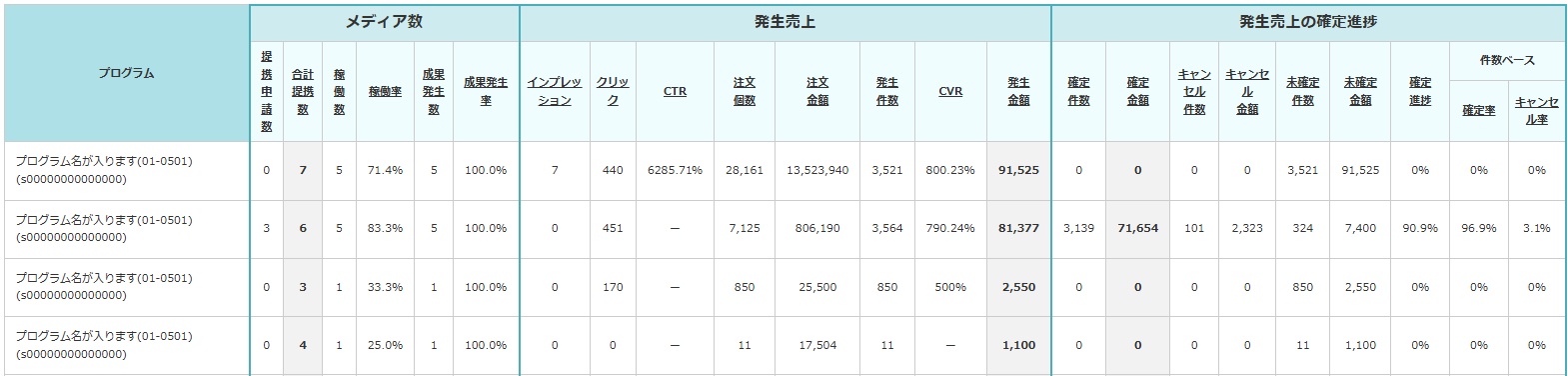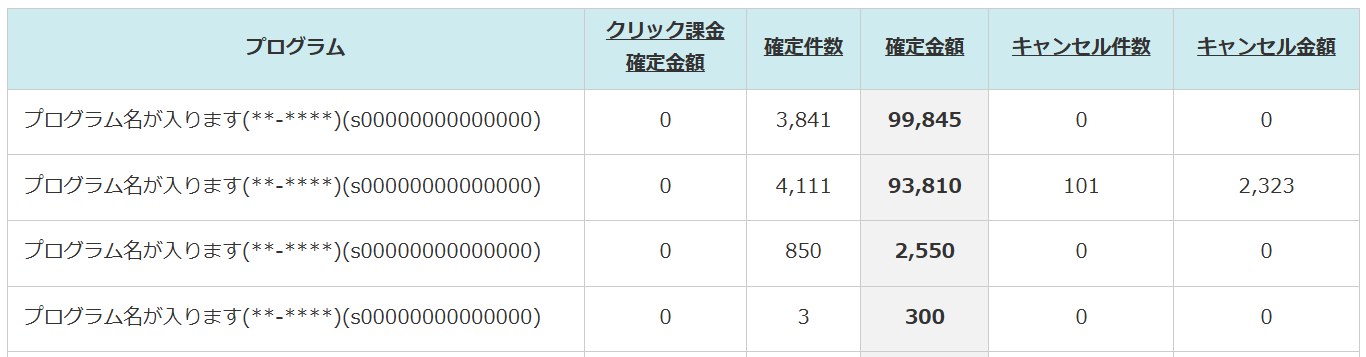 | 合計確定金額 | 確定した成果の合計金額です。 |