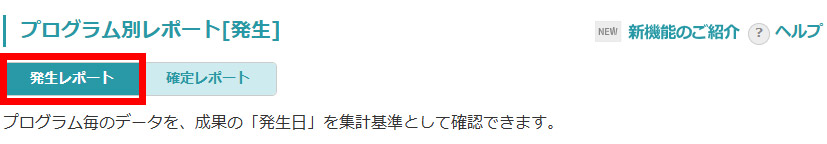 - 発生レポートでは、プログラム毎に「発生した成果」を確認できます。