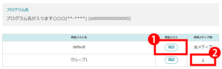 適用している商品リスト - (2)適用メディア数のリンク※全メディアを除く