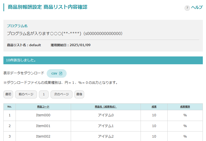 商品毎に個別の成果報酬で管理画面へ計上させることのできる設定となります。