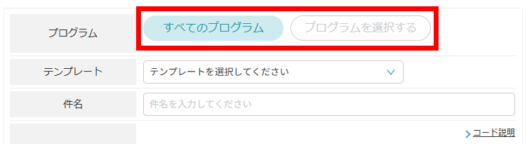 | メッセージ | 自動変換されるコード(差し込み設定)が利用できます。「コード説明」から利用可能なコードを確認し、コピーして使用してください。 |