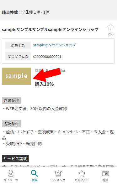 代替画像を表示している場合は、プログラム一覧で(代替画像)と表示されています。100×60のバナー素材も登録のない場合は、弊社が用意した【代替画像(no image画像)】を表示します。